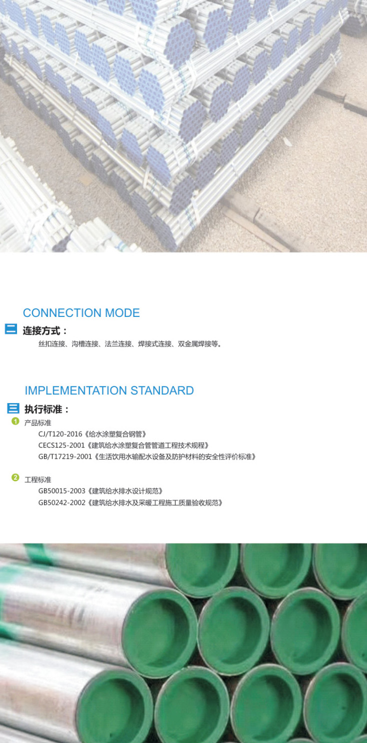 給水涂塑復(fù)合鋼管,以直縫焊管為基管,它具有優(yōu)良的綜合性能和很強的耐腐蝕性,使用外界溫度為-40℃-90攝氏度,適用輸水溫度為30℃..